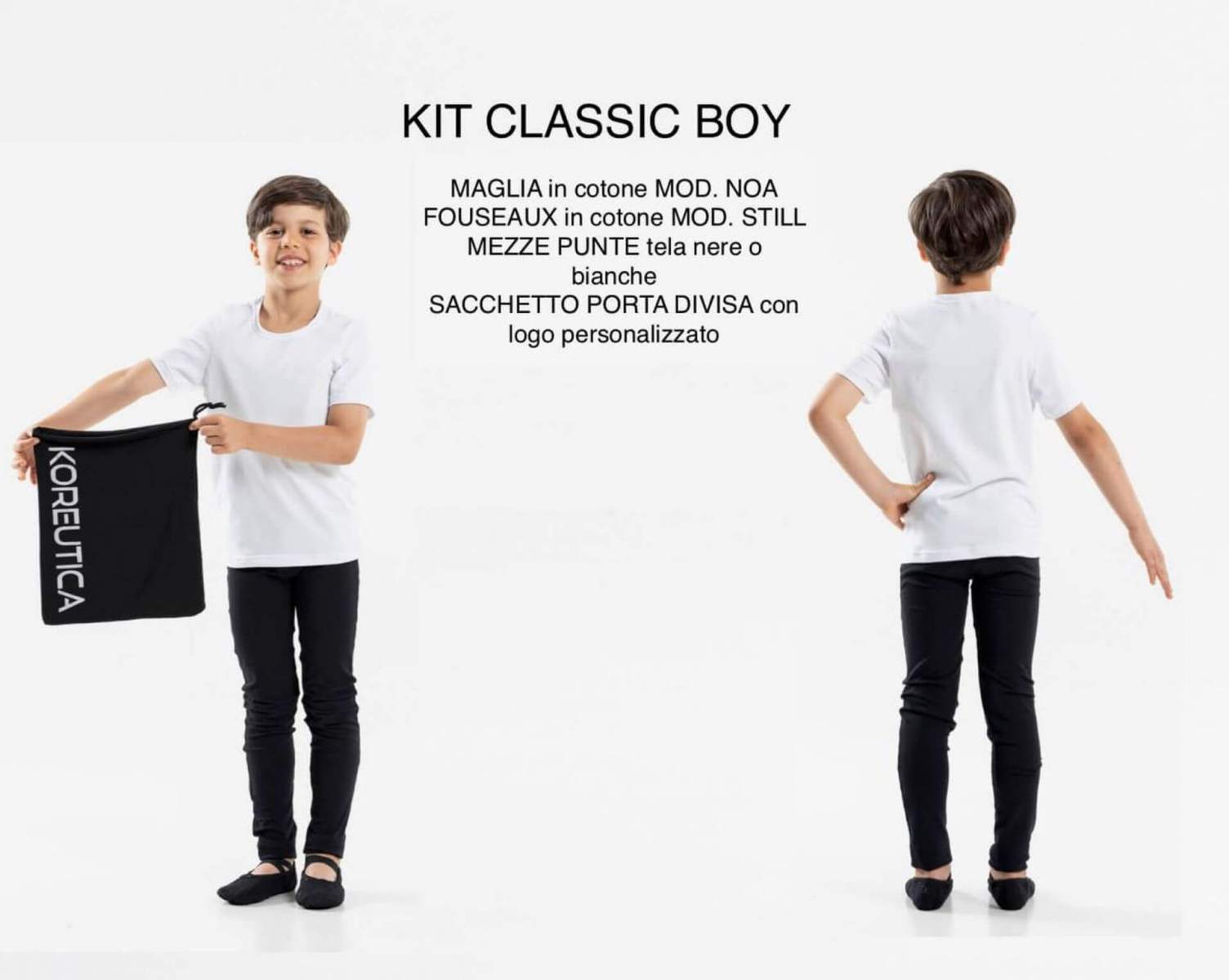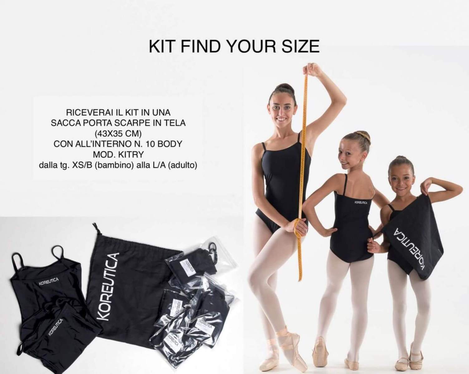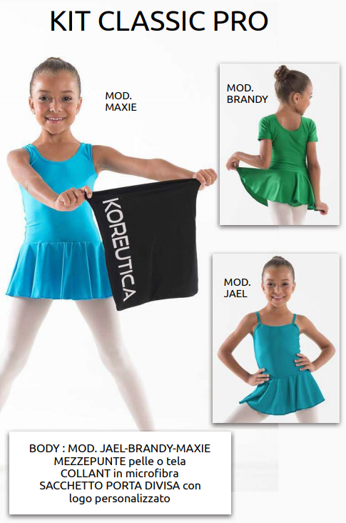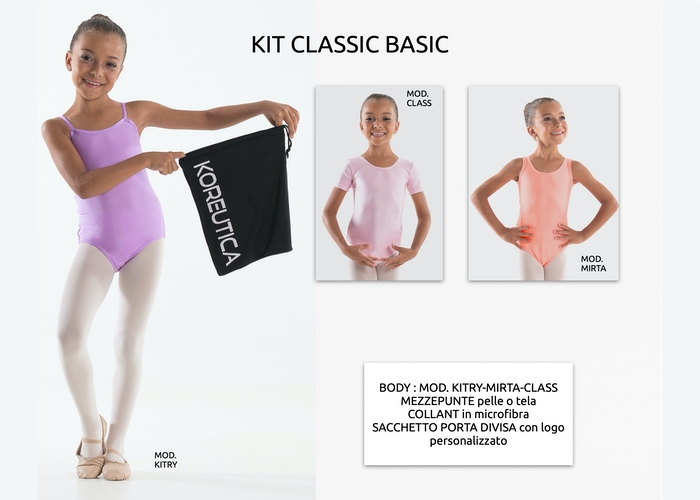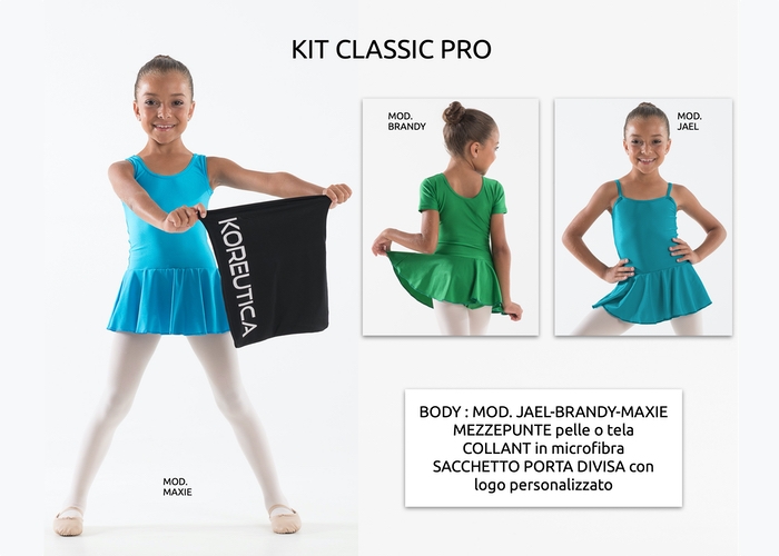 Our starter kits contain everything you need for a dance class and are a great way to start the academic year. Various proposals of sarter kits for children and adults for classical and contemporary dance lessons. You can also create custom kit choosing among our products! Request a quote to info@koreutica.it.