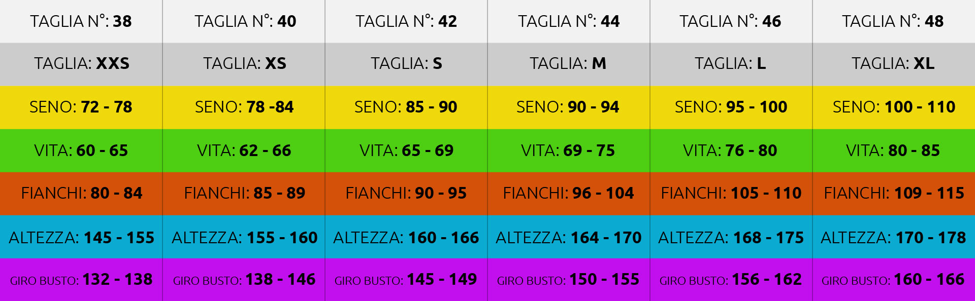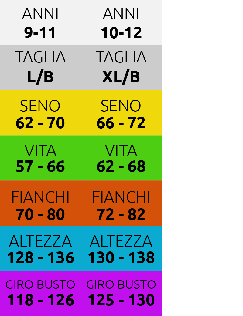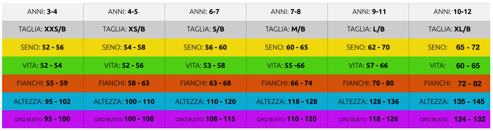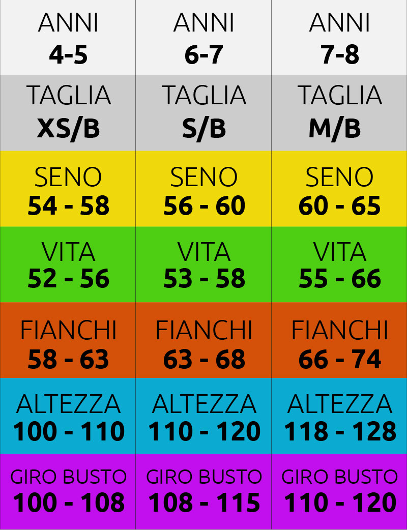 Per essere sicuro della taglia Koreutica giusta vi invitiamo a seguire le nostre tabelle per costumi da adulto e da bambino.